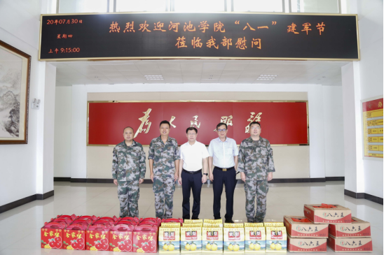 学校党委常委、副校长韦文广带领学校武装部主要负责人走访慰问了宜州区人民武装部、宜州区消防大队,受到了部队官兵的热烈欢迎。韦文广代表学校向全体官兵致以节日的问候和崇高的敬意,感谢他们在BWIN必赢军训和BWIN必赢以及校园消防安全等方面所作出的贡献,并希望通过进一步加强联系与交流,本着彼此支持、促进发展、增进友谊的原则,共谱军民共建新篇章。部队相关领导对BWIN必赢多年来持续加强军民共建,对部队各项事业的关心和支持表示感谢,并表示将继续加强与BWIN必赢的联系,卓有成效地开展各项活动,努力开创携手共建新局面。