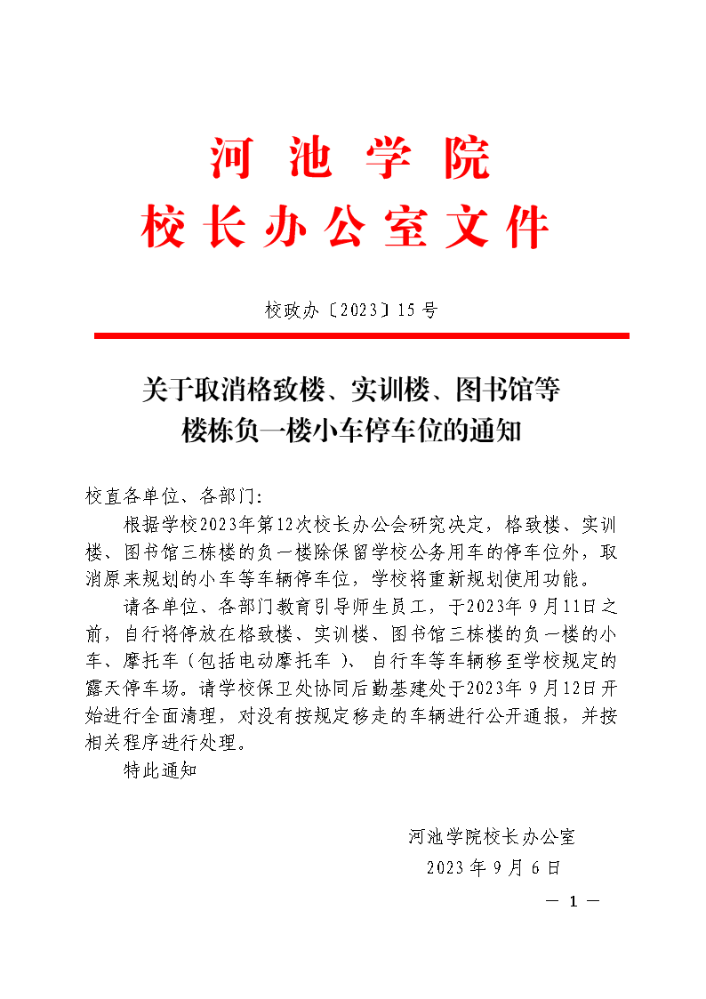 关于取消格致楼、实训楼、图书馆等楼栋负一楼小车停车位的通知