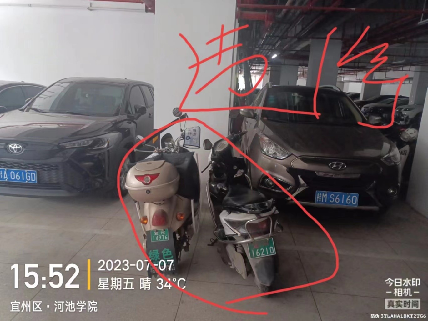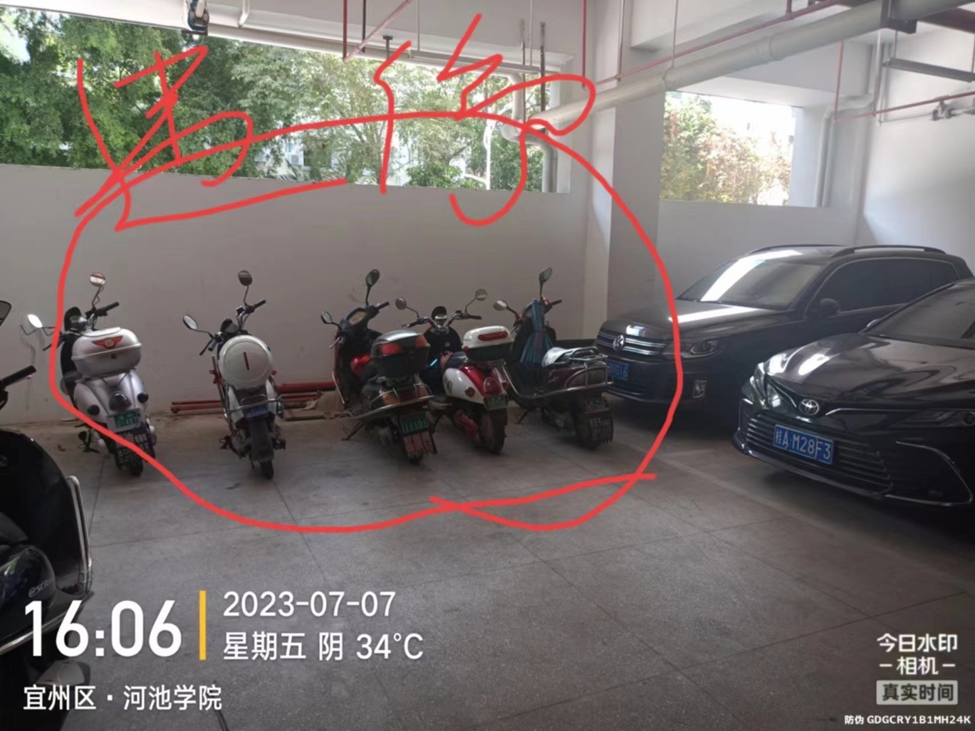 2023年7月7日实训楼地下停车场小车、电车违停情况通报